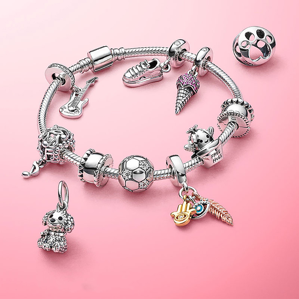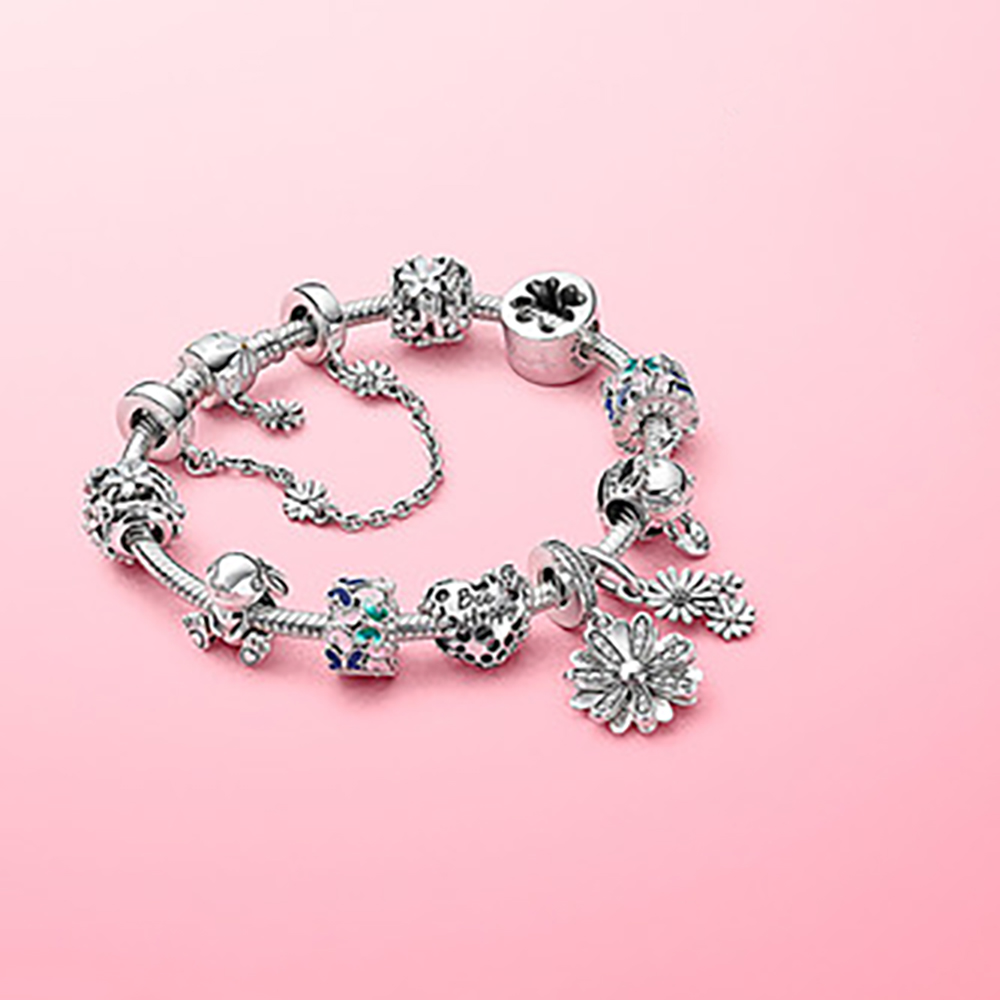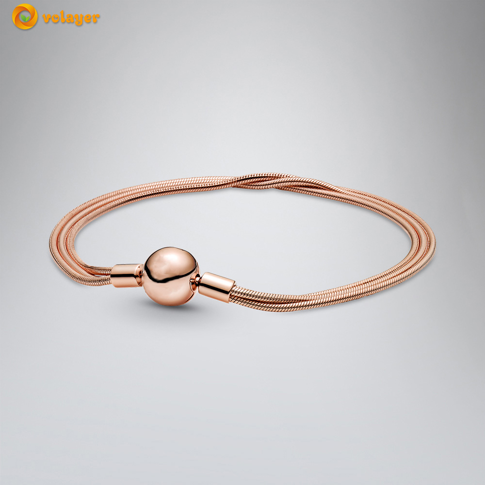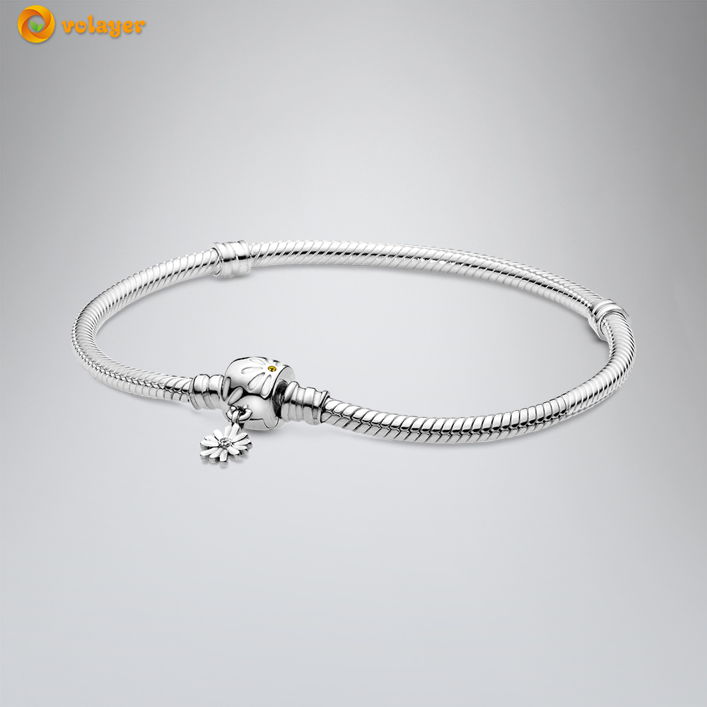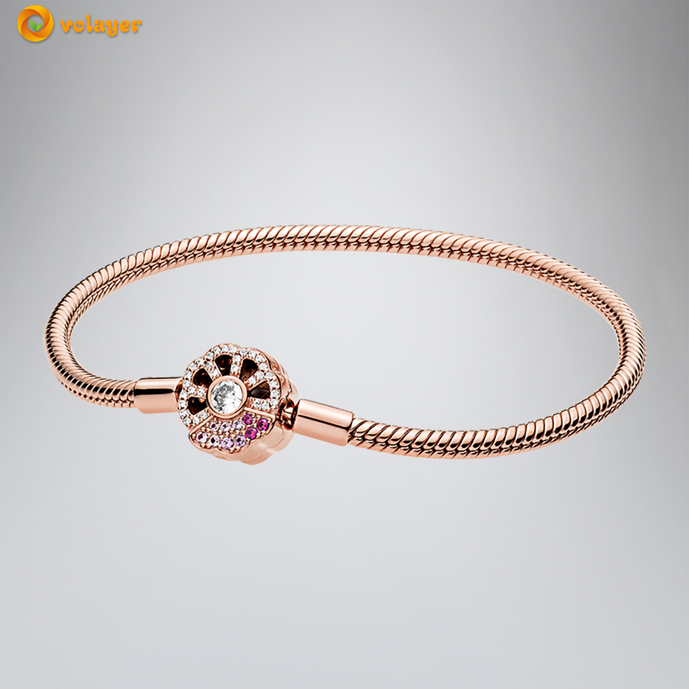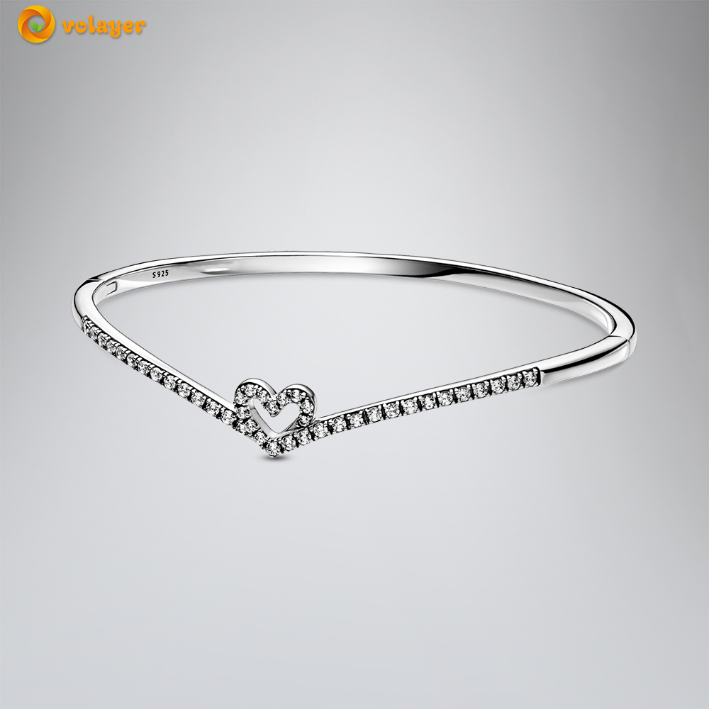 Volayer 925 Sterling Silver Bracelets Butterfly Clasp T-bar Heart Moments Beads & Pavé Snake Chain Bracelets Friendship Bangles
