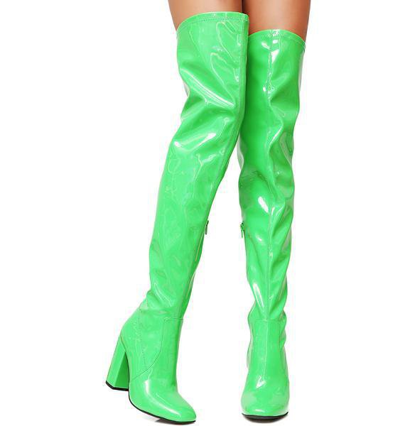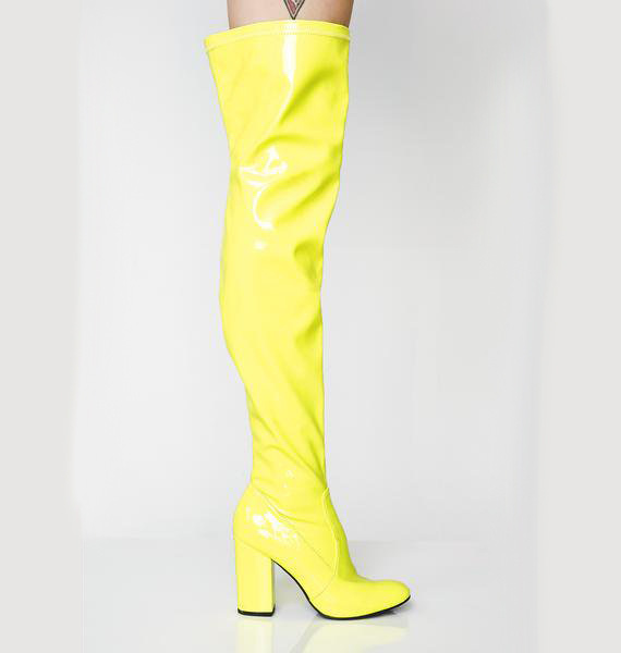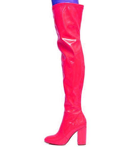 Winter Chunky High Heel Over The Knee Boots Zipper Solid Colorful Patent Leather Square Head Sewing Women's Shoes