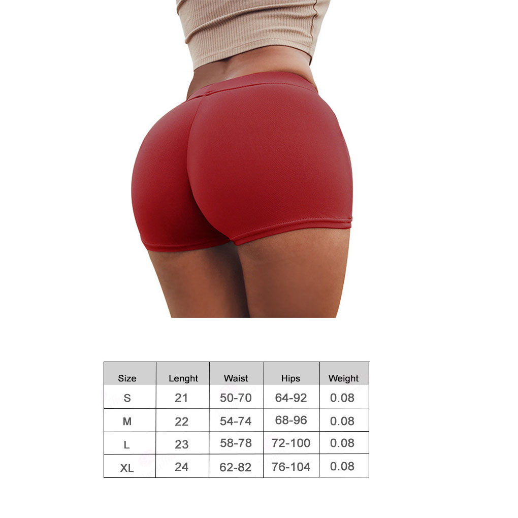 Women Casual Solid Elastic High Waist Push Up Fitness Shorts Running Gym Stretch Sports Short Pants Breathable Clothing