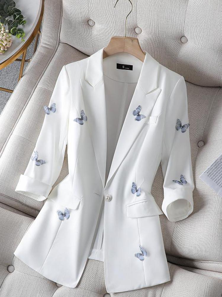 Women Chic Elegant Office Lady Single Button Blazer Vintage Coat Jackets Blazers Long Sleeve Ladies Outerwear Tops