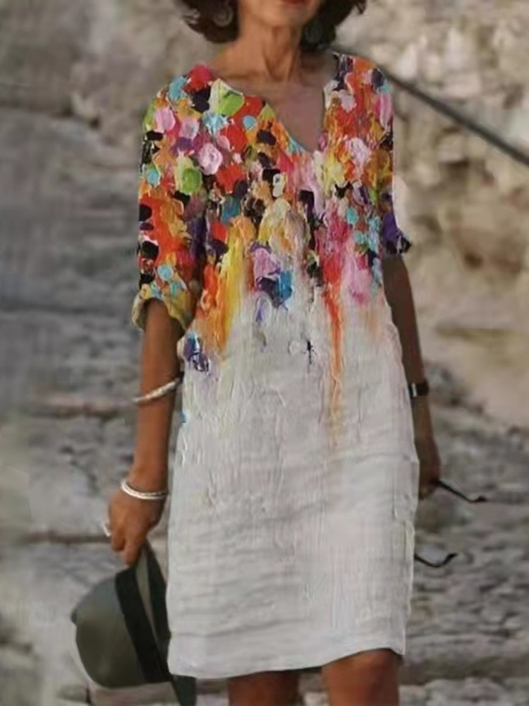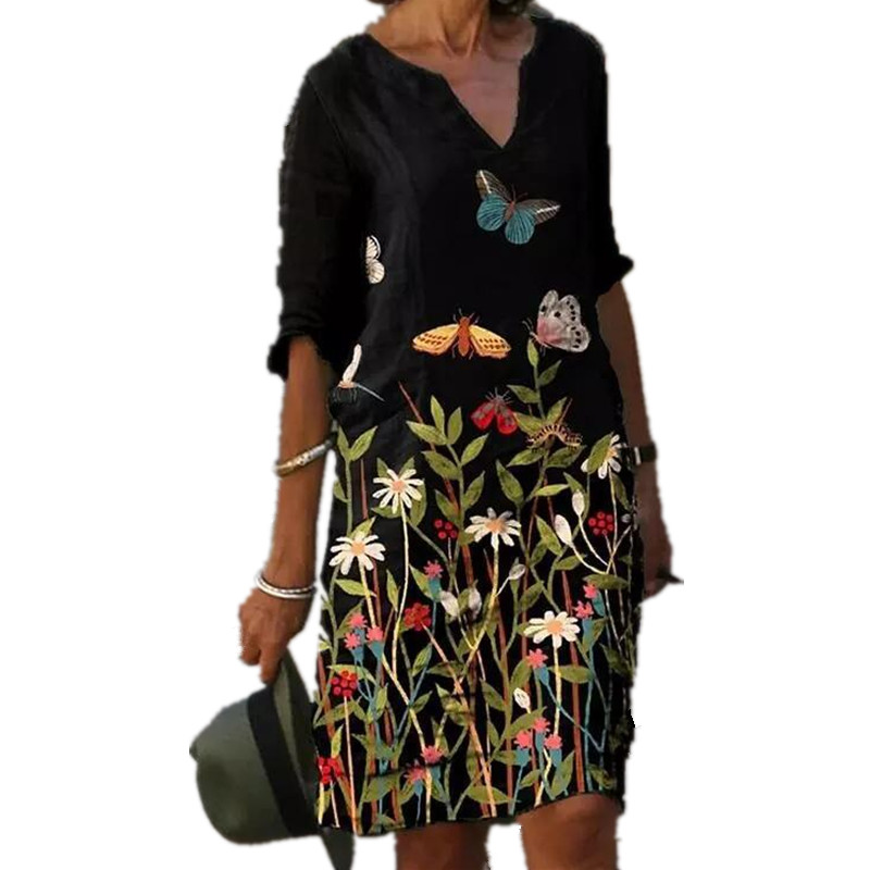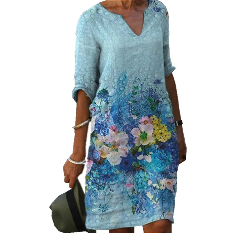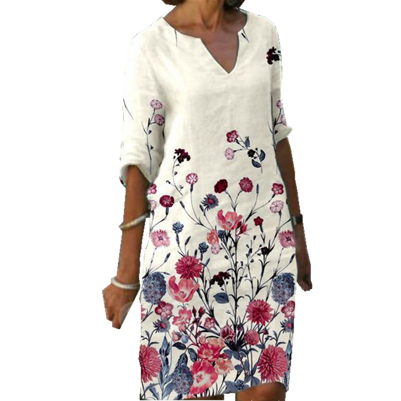 Women Dresses Summer V Neck Floral Print A Line Dress Casual Party Vintage Retro Vestidos Robe