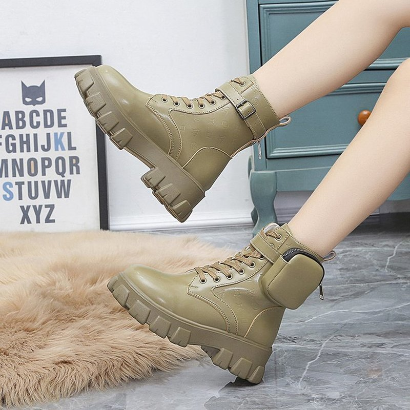 Women Thick-Soled Leather Boots Casual Women Boots Women Lace-Up High Boots Nylon pouch heels flats booties