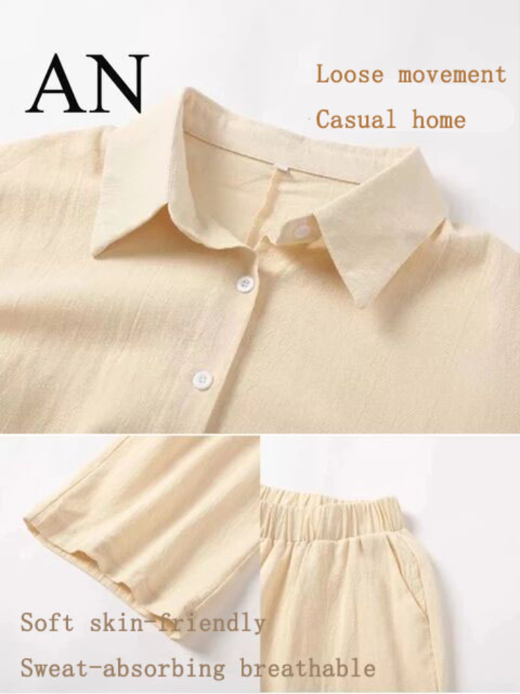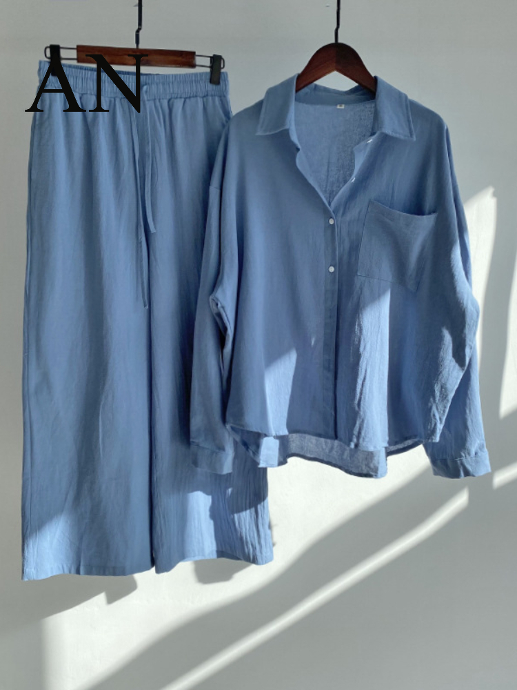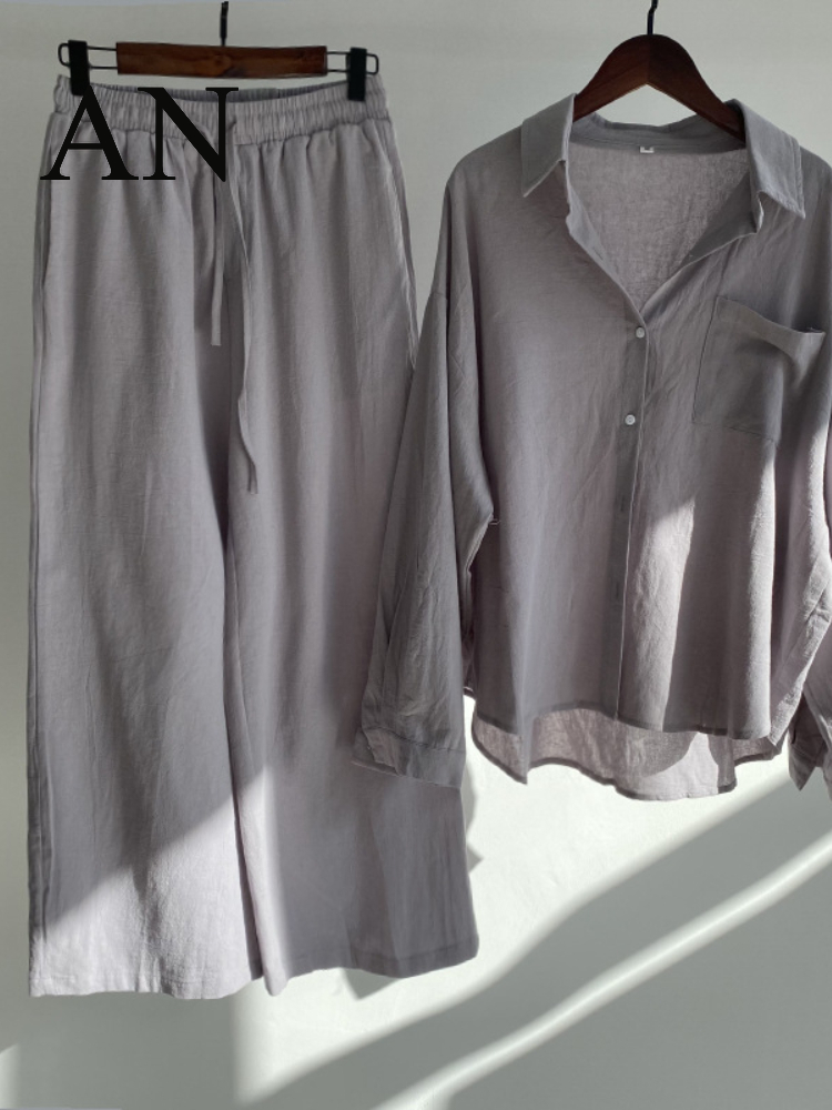 Women's 2-piece Retro Oversize Cotton and Linen Shirt Plus High Waist Slacks Suit Women's Sweatshirt Set Sweatshirt