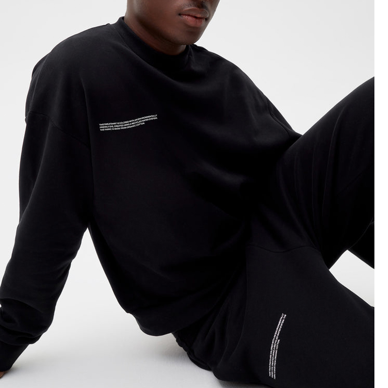This hoodie is made from 100% organic cotton. It's a mid-weight fabric with a looped texture on the inside for extra softness.