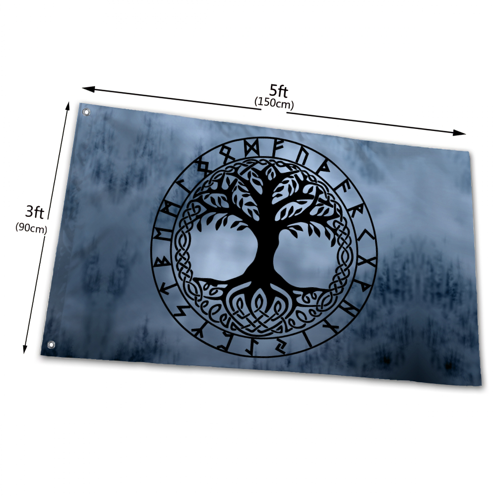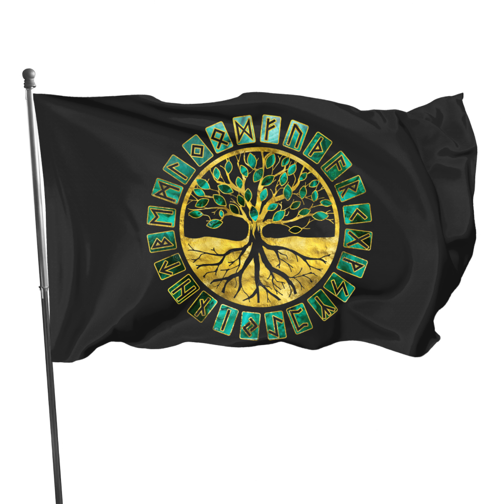 Yggdrasil Tree Runes Flag Viking Tree of Life Flags Norse Mythology Gift Hanging Banner Home Decor