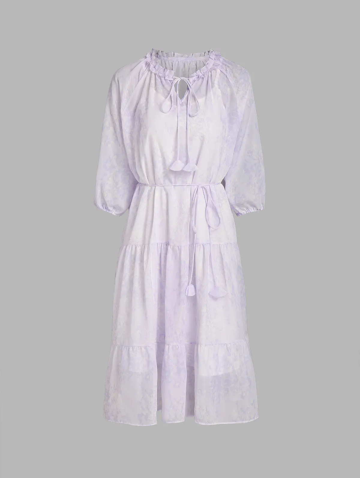 Model Number : Floral Print Raglan Sleeve Keyhole Tiered Dress with Cami Dress