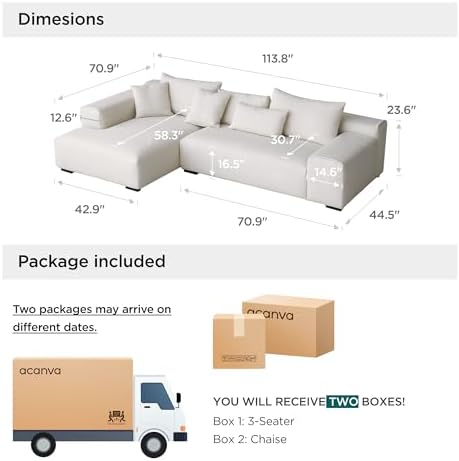Well first things first, I needed a couch quickly. I ordered this couch on a Sunday and it was delivered the following Saturday. The delivery was on time as scheduled and the couch came in two boxes which made for easy* unpacking. The delivery men were both professional and helpful.*The unboxing/set up process was easy because there were only two boxes but the two couch pieces are heavy so I would not recommended going at it alone, however it is doable if you don’t have help.The couch is perfect for my 1 bedroom apartment. The color is a creamy white, the fabric is soft and comfortable. The cushions are sturdy but you also sink into them a bit. It’s only been a couple days with this couch, but I’m very pleased.For similar couches in the same price range, this one is definitely a steal.