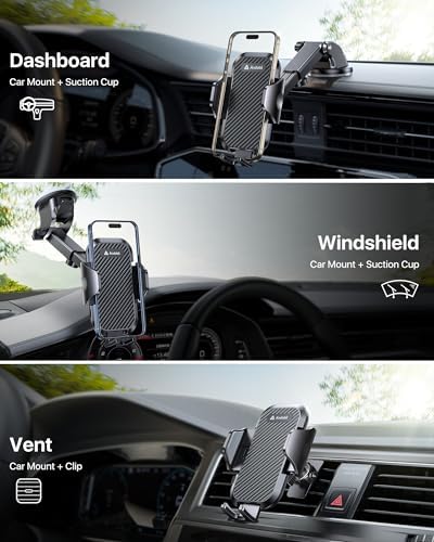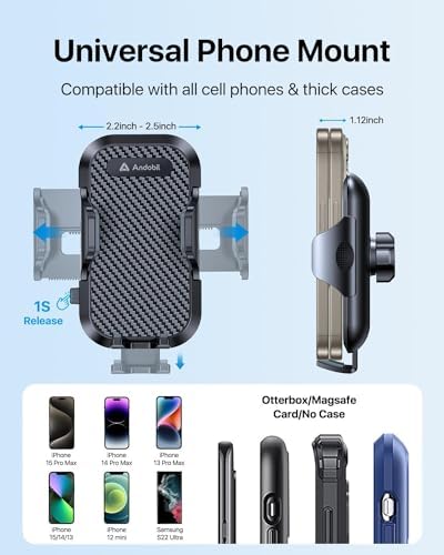 andobil Phone Mount for Car (Bumpy Roads Friendly) Military-Grade Car Phone Holder Mount Universal Phone Holder for Your Car Dashboard-Windshield-Vent fits iPhone 15 14 13 12 Pro Max Samsung S24 Ultra