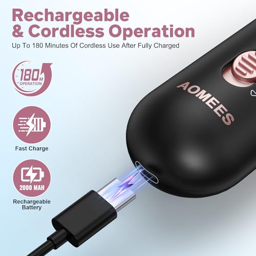 Compared with other electric nail file set, AOMEES Manicure Pedicure Tools is Best for grinding thick toenail, smoothing corns, trimming, filing, and polishing natural, thick, and brittle nails, remove calluses, acrylics nails, gel polish, cuticle remover and manicure set of hands & foot. It can be used by the whole family.