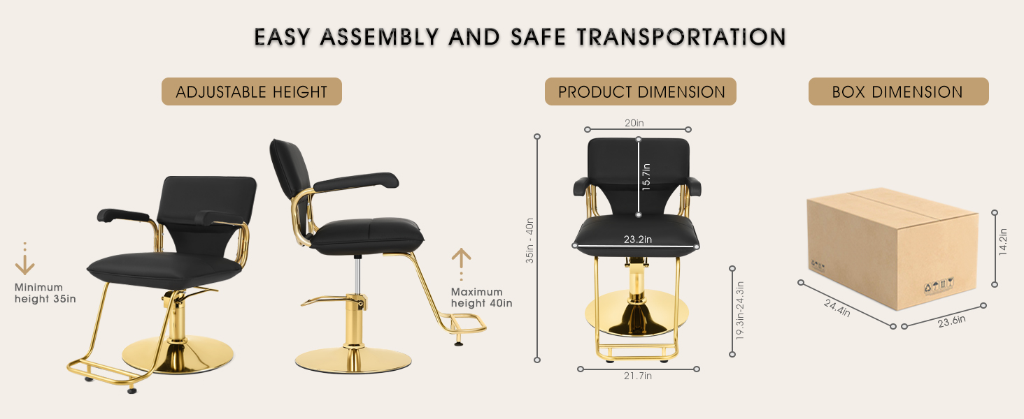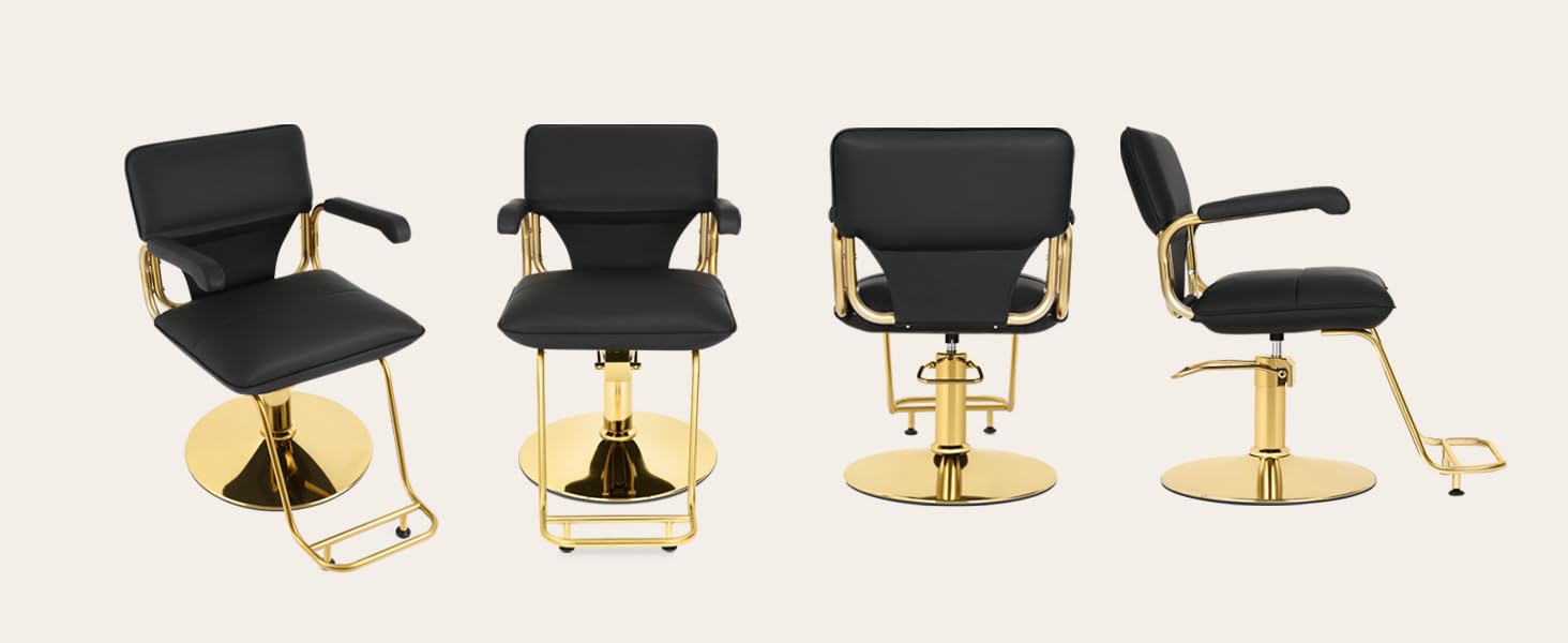 logShoppableMetrics("premium-module-5-comparison-table-scroller", true) Customer Reviews 3.9 out of 5 stars 16 3.9 out of 5 stars 219 5.0 out of 5 stars 2 4.2 out of 5 stars 755 4.1 out of 5 stars 74 3.8 out of 5 stars 682 3.9 out of 5 stars 334 Price $205.99 $299.99 $229.99 $179.90 $229.99 $186.99 $186.69 Color Gold Black Gold Black Black+Red Black Black Height Adjustable ✔ ✔ ✔ ✘ ✔ ✘ ✘ Reclinable ✘ ✔ ✘ ✔ ✔ ✔ ✘ Waterproof ✔ ✔ ✔ ✔ ✔ ✔ ✔ Weight 48.4 LBS 77.2 LBS 50.6 LBS 57.3 LBS 66.1 LBS 48.3 LBS 67 LBS Product Dimension 18.5"x40"x23.4" 22.8''x37.4''x23.6'' 23.6''x38.7''x19.3'' 19.3''x35.4''x22'' 27''x38''x26'' 20''x35.4''x20.1'' 20''x33.8''x32.5'' Upholstery Material Faux Leather Faux Leather Faux Leather Faux Leather Faux Leather Faux Leather Faux Leather Weight Capacity 330 LBS 400 LBS 330 LBS 330 LBS 400 LBS 330 LBS 330 LBSVery nice up to date salon chair I love the way its made, it has a step that touches the floor like others makes it easier for client to get into the chair, the chair is very comfortable and was on my back and behind the cushion is good quality the leather is very nice in appearance and quality does not look cheap and it swivels to make styling more easing and I can turn while client is sitting in the chair, this helps me out so much and its all black I love it blends in with my theme so well and looks better than the other chair I had in the past and it was easier to install assemble I really am considering order another.