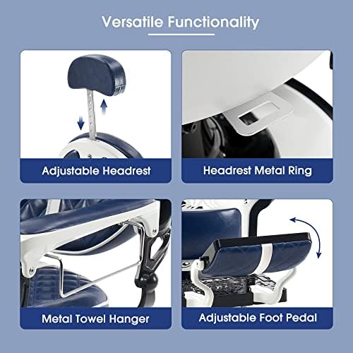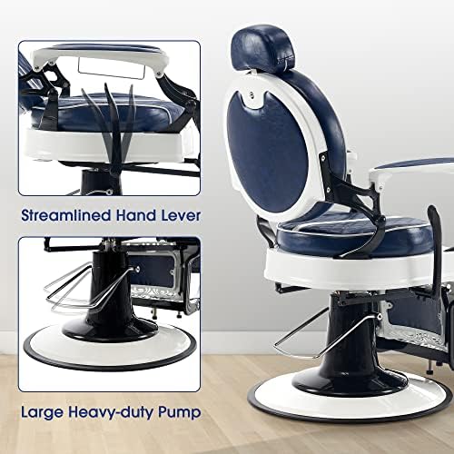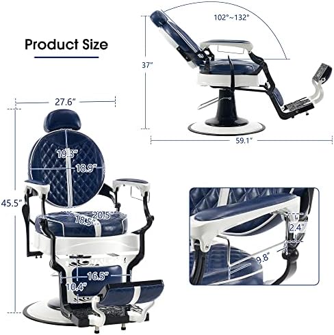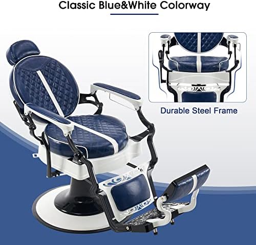 This modern vintage luxury professional barber chair comes in a classicblue & white colorway that stands out among the solid color barberchairs. High-quality leather and multi-functional reclininghydraulic piston adjustable design can meet the diverse needs of yourhair salon, beauty salon, home salon, tattoo parlor and other places!