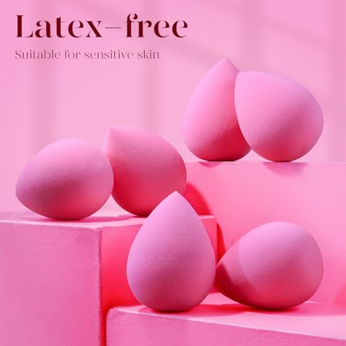 BEAKEY Super Soft Makeup Sponge Set of 6, Makeup Sponges for Foundation, Liquid, Cream and Powder, Pink Beauty Sponge for Blending, 0 Latex Blender, Ideal Gifts