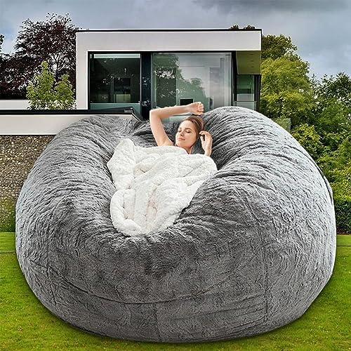 Bean Bag Chair for Adults Kids Without Filling Comfy Fluffy Giant Round Beanbag Lazy Sofa Cover for Reading Chair Floor Chair, 6FT, Grey
