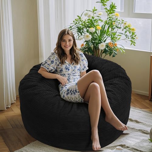We got this bean bag for our family room to be used for movie watching and video gaming. The bag is super heavy, however it’s important to know this bag easily rolls so you don’t have to pick it up.It comes compressed in a super heavy box, you will need help unless you open the box an slide it out where it is and open the bags to release the bag. It’s fairly easy to get the cover on and I like how you can take it off to wash.Also the memory foam piecesinside seem to be a better option than those beans that eventually compress because they maintain their shape and cushion.The bag itself is round and is accommodating for everyone. This bag is perfect for teens and kids. I would certainly recommend, please make note of this size. It is quite large.