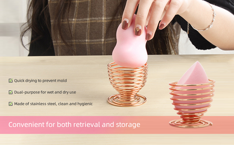 This little stand works great. I have some travel containers for my makeup sponges, but they don't work as well to just leave the sponge in every day, I feel like there's always some side that doesn't fully dry. My largest sponge was dry on all sides by the next morning. My different size sponges fit in this differently, but they all stand up in it just fine and fall further in as they shrink.