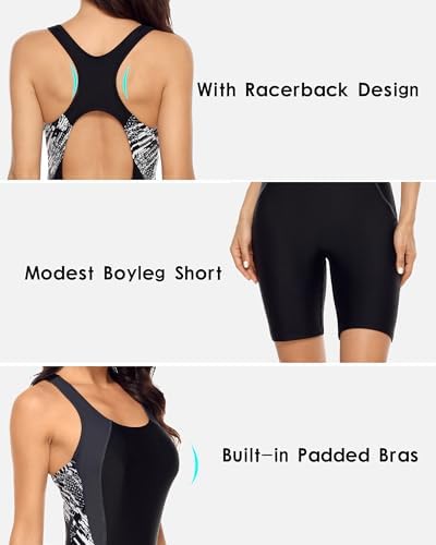beautyin Women's Boyleg One Piece Swimsuit Racerback Athletic Bathing Suit