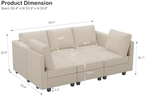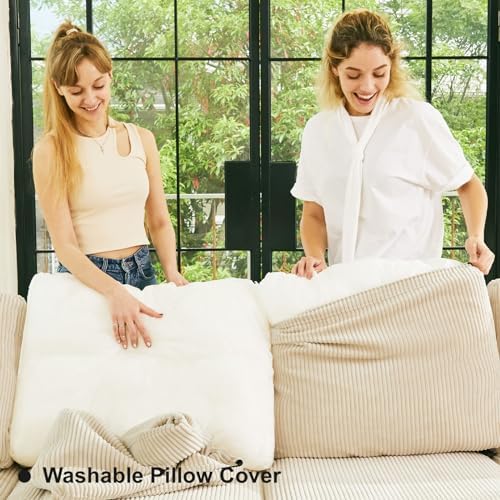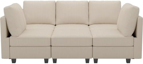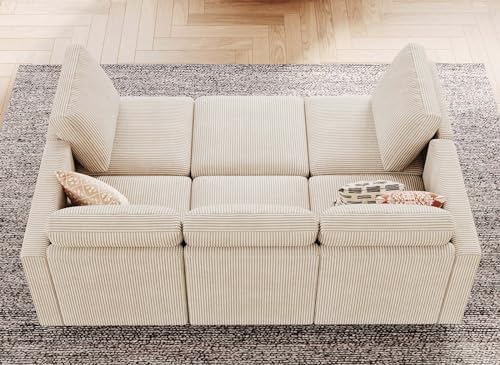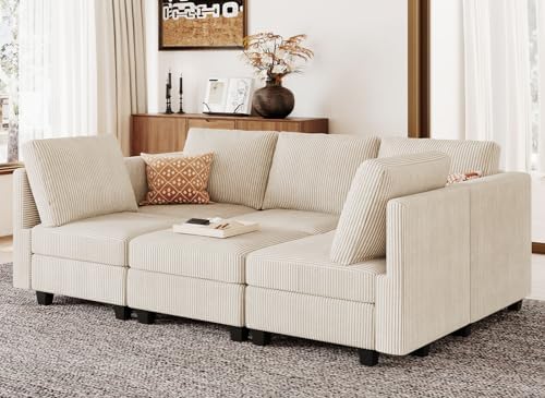 Belffin Modular Sectional Sleeper with Storage Ottoman Corduroy Sectional Couch with Chaise Convertible Modern Sectional Sofa Couch Beige