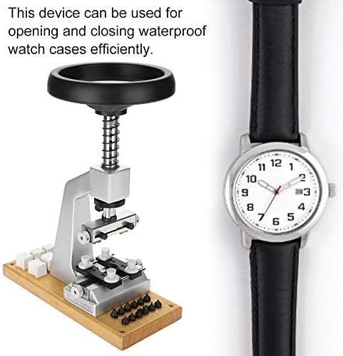 Includes six grooved dies and adapter. Includes one adjustable case holder. This device can be used for opening and closing waterproof watch cases efficiently