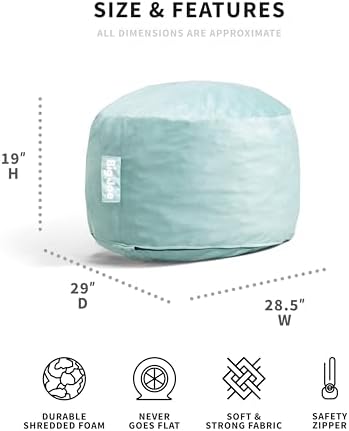 If you’re unsure exactly how big this is based on the measurements alone, I’ll give you something to compare it to. A golden retriever, a lab, half a german shepherd, a “full figure” adult female, and a toddler can all fit on this at the same time comfortably!This size does take up a lot of room, but it’s definitely good for snuggling and cuddling and diving into (according to my 9yo).It’s also way comfier than a regular bean bag chair since it has foam filling. It makes it a bit more supportive on your back.