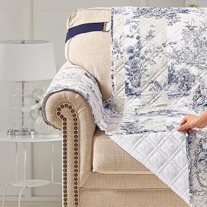 I wanted a cover/protector for my brand new recliner that would offer protection from our three cats as well as potential food spills since I tend to enjoy my dinners while watching TV. This chair cover delivers exactly what Iwas looking for--protection without too muchsacrifice of aesthetics. I think the cover is cute, and it has little, rubbery non-skid paw prints on the back side, which help keep the cover in place. It is thin enough that it should be easy to throw in the washer when the time comes for laundering.The cover comes with a strap to help secure it to the chair,but thus far I have found it unnecessary to use this because of the non-slip backing.