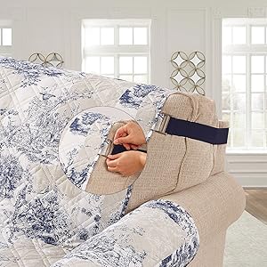 With two sets of loop positions for best use of the adjustable strap. The strap should secure 4" below the top of your furniture. Not be stretched to exceed seat width +10", otherwise strap will break and snap back.