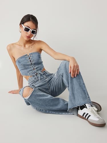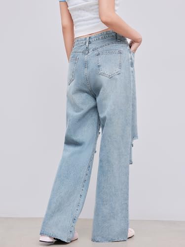 CIDER Women’s Ripped Jeans High Waisted Distressed Baggy Straight Wide Leg Pants