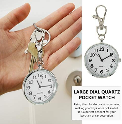 Features ● Color: Black. ● Material: Alloy. ● Size: 8.00X4.00X0.70 cm/ 3.14X1.57X0.28 inch. ● Material: This keychain pocket watch is made of alloy material, it is a retro and stylish accessory for your handbag and wallet. ● Easy to Carry: Clip- on pocket watch with a key fob that fits in a pocket, hangs on a backpack, or purse, and easily secures to accessories without damage. ● Easy to read: The large screen of the pocket watch allows you to see clearly, the font size is just right, and you can directly get the accurate time. ● Unique Design: This pocket watch chain is useful and practical as a clothing accessory, the clasp can be used to fasten any bag, purse, or similar to bring you a good mood. ● Great Gift: This open dial pocket watch can be used as a gift for family and nurse doctor friends, suitable as a graduation gift, birthday gift, Christmas gift, etc. Package Including 1 x Watch Keychain