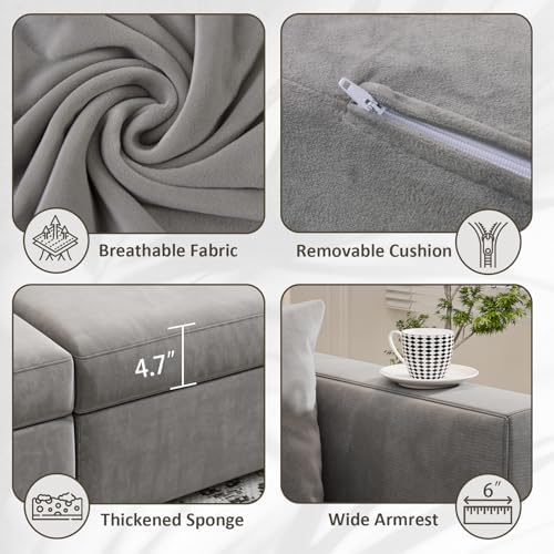 The modular sectional sofa appeals to broad double lines accented with French piping details and velvet fabric.