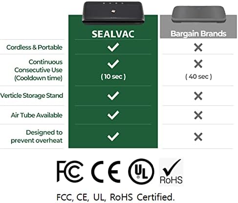 Not only is SEALVAC compact in size, it’s completely wireless which means that you can take it out, use it, and store it without having to compromise on long-term countertop space. With each full charge you’ll be able to seal 80 bags.
