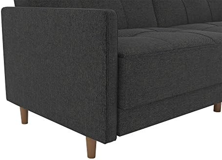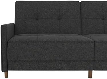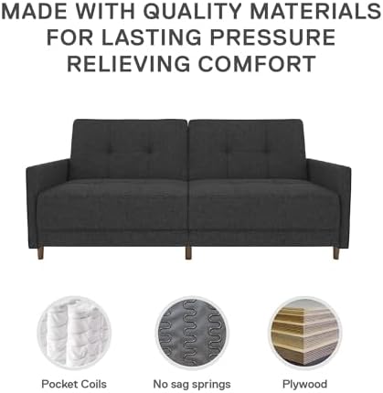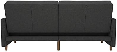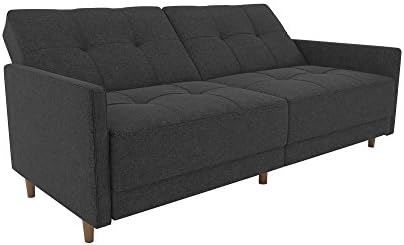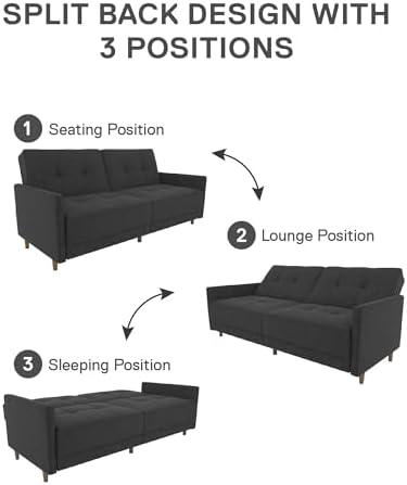 The mid century modern look is making a comeback in a big way, and we’ve captured it all here for you in our stunning and or a coil futon. The tufted upholstery gives this futon its unique charm, available in your choice black or white faux leather, as well as in grey or navy blue linen—perfect to fit your Home’s décor! plus the sleek wooden legs add to the sofa's style, with center legs designed to provide extra stability. The sofa's Secret is its split back design that allows guests to adjust their angle of comfort. So you can each sit up, lounge back or open up the space to lie flat. The independently encased coils are designed to offer complete comfort by day and extra support at night when your futon opens up for overnight guests. The and or a is small enough for tight living spaces while providing you with big style and comfort!.