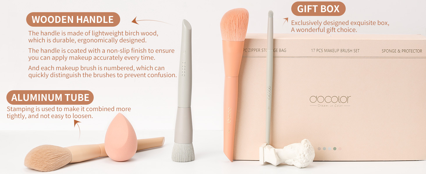 Docolor 17PCS Professional Makeup Brush Set Morandi