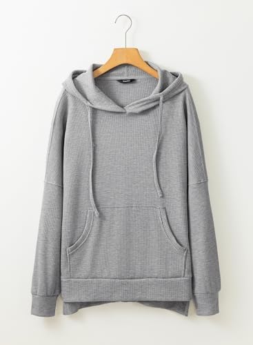 Dokotoo Oversized Hoodies for Women Casual Long Sleeve Waffle Knit Drawstring Side Slit Pullover Sweatshirts with Pocket