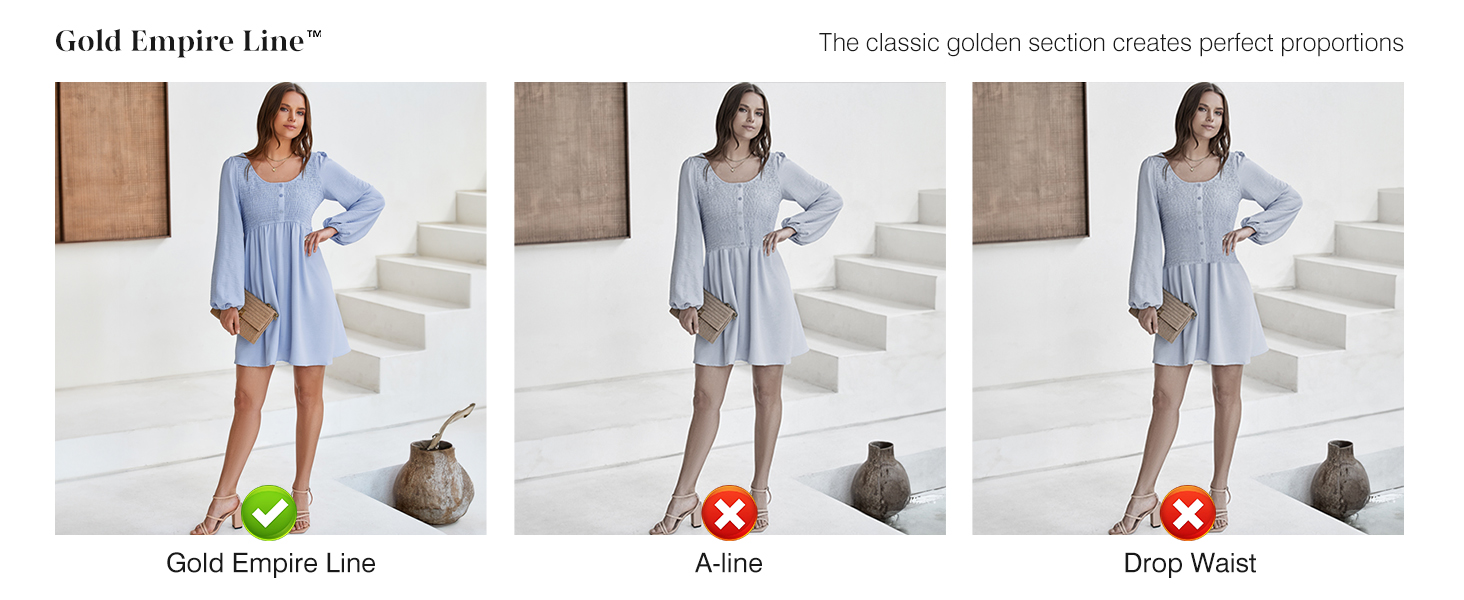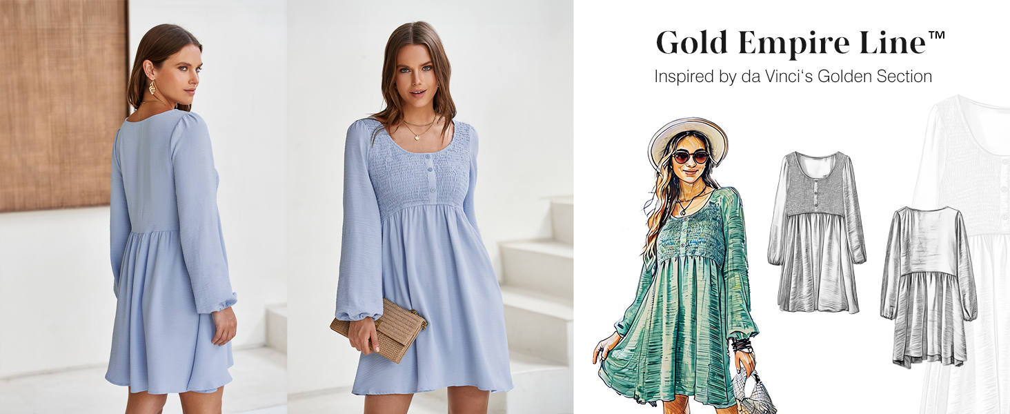 Dokotoo Womens Long Sleeve Empire Waist Smocked Flowy Mini Dress