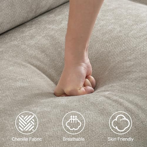 EASELAND 88" Chenille Sofa Couch, 3 Seater Loveseat for Living Room, Lounge Sofa for Bedroom with Removable Back and Seat Cushions, Modern Deep Seat Comfy Couch with Solid Wood Legs and Armrest(Beige)
