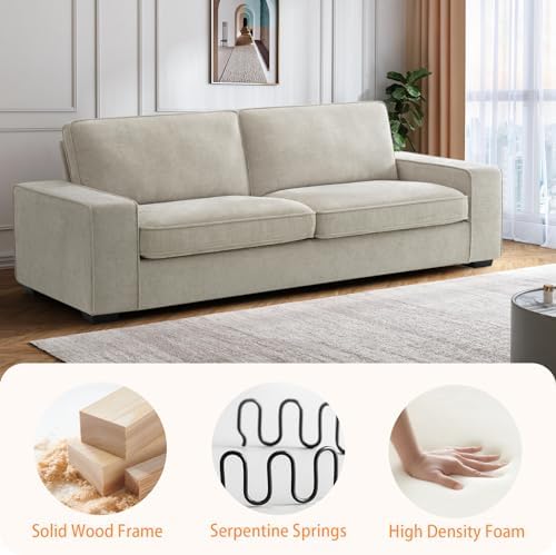 Modern Sleeper Sofa Couches for Living Room-113'' Beige 3 Seater Lounge Cloud Couch-No Assembly Required, Modular Corduroy Convertible Full Sponge Compression Sofas for House, Apartment