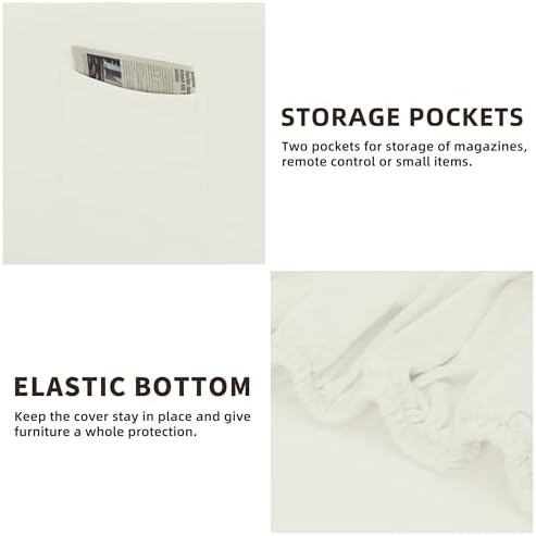 the material is insanely stretchy & so so so soft. if the furniture is used a lot, the fabric may wear, but for my purpose there isn’t a concern. it does seem like it may get staticky - slightly fleece feel. the color is the perfect dark grey - more blue than brown. super easy to get on - tags are included for location.