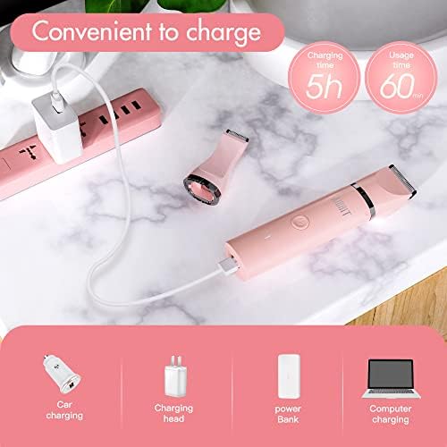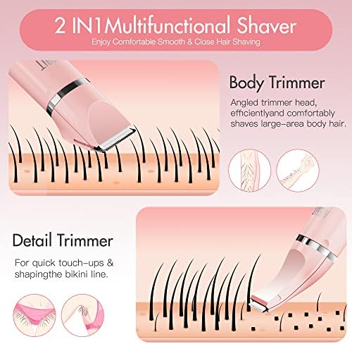 Electric Bikini Trimmer for Women - 2 in 1 Electric Lady Clipper Pubic Hair Groomer Painless Hair Removal Razor Body Shaver , Portable Ladies Shaver with 2 Trimmer Heads , IPX7 Waterproof