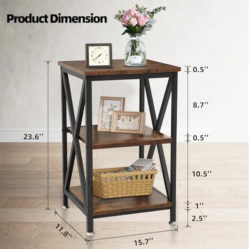 Thickened wood boards and strengthened metal frame enable the bedroom end table to hold up to 66 lbs