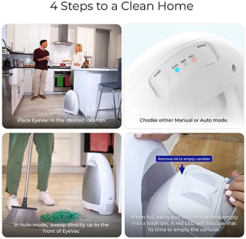 EyeVac Home Touchless Vacuum Automatic Dustpan - Great for Sweeping Pet Hair Food Dirt Kitchen - Ultra Fast & Powerful, Corded Canister Vacuum, Bagless, Automatic Sensors, 1000 Watt (White)
