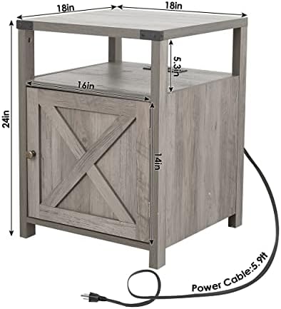 Farmhouse Nightstand with USB Ports and Outlets
