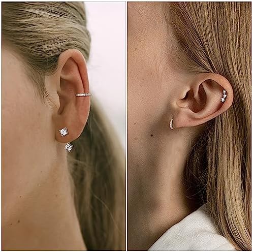 FIASASO 3 Pairs 925 Sterling Silver Hypoallergenic Earrings Set for Multiple Piercing Dainty 14K Gold Plated Stud Huggie Small Hoop Earrings for Women Trendy Cute Earring Stacks for Sensitive Ears