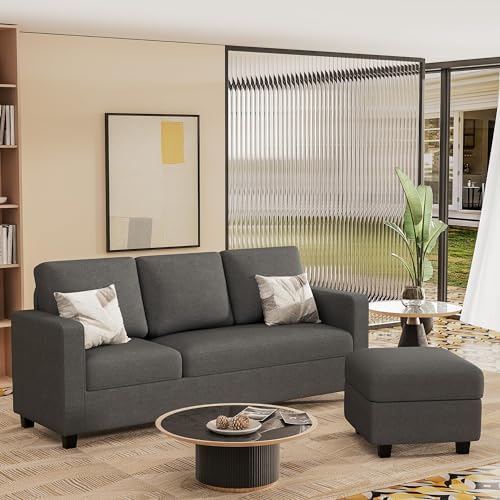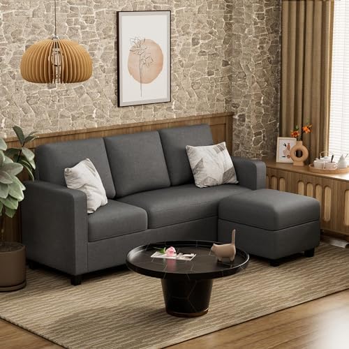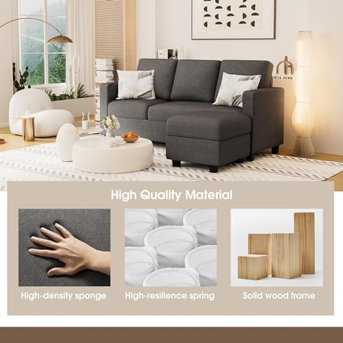 Flamaker Sofa, Sectional Couch with Reversible Chaise, Fabric Small Sofa for Living Room, Dark Grey, 64.2x42.5x16.9 inches, 660lbs Weight Capacity