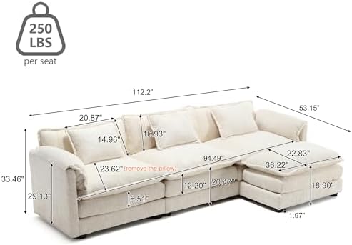 The cloud couch sectional comes with a convenient and versatile removable ottoman, allowing you to customize your seating arrangement according to your preferences and needs. Sturdy solid wood frame, chenille fabric, filled with high-density sponge, making this modular sectional sofa beautiful and comfortable, L shaped living room sofa couch with L shape can be against the wall which is suitable for small living rooms, apartments, home offices.