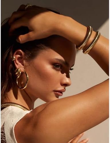 The design of these gold bracelet stack are simple yet bold enough to be perfect for everyday wear. Highly polished, it sparkles at every angle. Elegant and generous, these gold bracelets for women can be worn alone or stacked to match different outfits and moods.