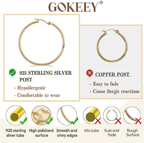 Gold Hoop Earrings Set for Women,14k Real Gold Plated Gold Hoops with S925 Sterling Silver Post Hypoallergenic Thin Hoop Earrings Gold Earrings for Women Trendy Jewelry Gifts