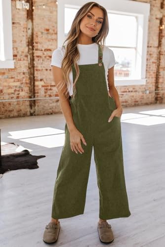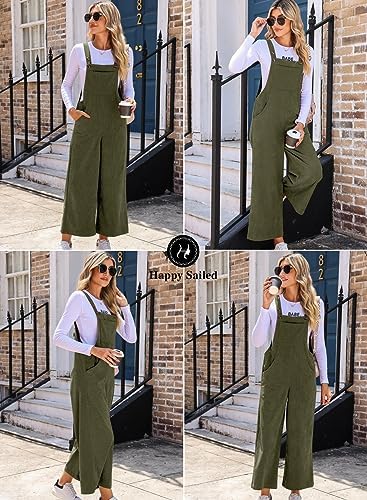 Happy Sailed Women Corduroy Overalls Casual Loose Sleeveless Adjustable Strap Wide Leg Jumpsuits with Pockets