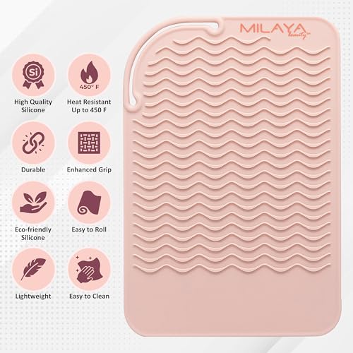 Picture online is depicted accurately and the mat works great! It’s also easy to roll up and use the loop to wrap around. It’s not too big and it’s not too small. It fits my flat iron perfectly and is definitely heat resistant.