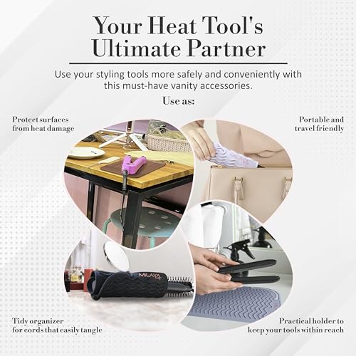 The design is amazing! its a perfect size can fit about 3 hot tools on it. easily rolls up for traveling. Its super lightweight. Its very durable and hard to damage. Theres no rubber smell ethier.