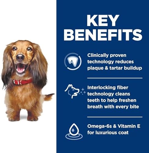 Dog dental health affects so much more than just the teeth. Help support overall health and vitality in your adult dog with Hill's Science Diet Oral Care Adult Dog Food. Designed with a unique, clinically proven interlocking fiber technology, this unique kibble works to clean dog teeth and freshen breath with every bite. Plus, this premium dog food made with natural ingredients is packed with Omega-6 fatty acids & Vitamin E to help your grown dog keep a healthy coat and skin each and every day. This recipe is formulated with decades of cutting-edge research to be a great-tasting dog food your adult dog can truly enjoy. There’s more to love with the new look of Science Diet. Some of our products also have new names, new kibble shapes & new formulas.
