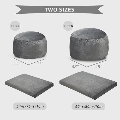 Homguava bean bag chair & bed cover is made of soft, thick and machine washable premium fabric, and the inner liner is filled with safe and healthy high-density foam. It is a fun conversion chair that converts from a soft and comfortable bean bag to a Large size bed mattress.